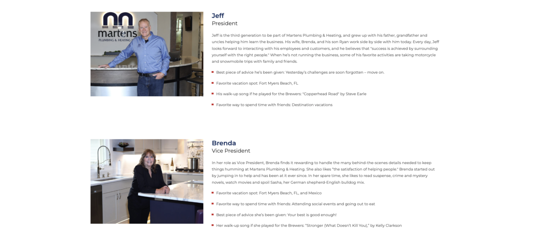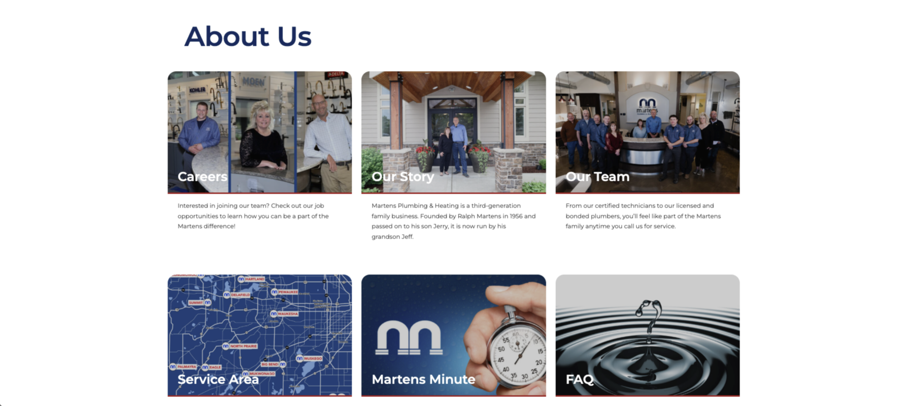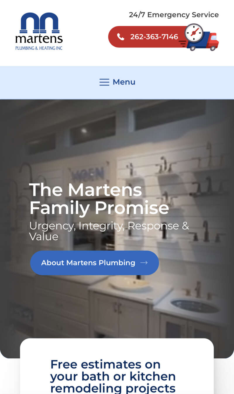 Martens Plumbing & Heating, a family-run business serving Mukwonago and Southeast Wisconsin since 1956, needed a website that would honor their long history while presenting a modern, customer-friendly design. We built a site that highlights their trusted legacy with a dedicated “Our Story” section, giving visitors a sense of the company’s roots and reputation. To boost local visibility, we also built out a full suite of geo-focused service pages, helping Martens connect with nearby customers searching for plumbing, heating, cooling, water treatment, and remodeling solutions. Updated photography and video were incorporated throughout to complement the refreshed design, while the site’s organized layout ensures customers can easily find the services they need.
