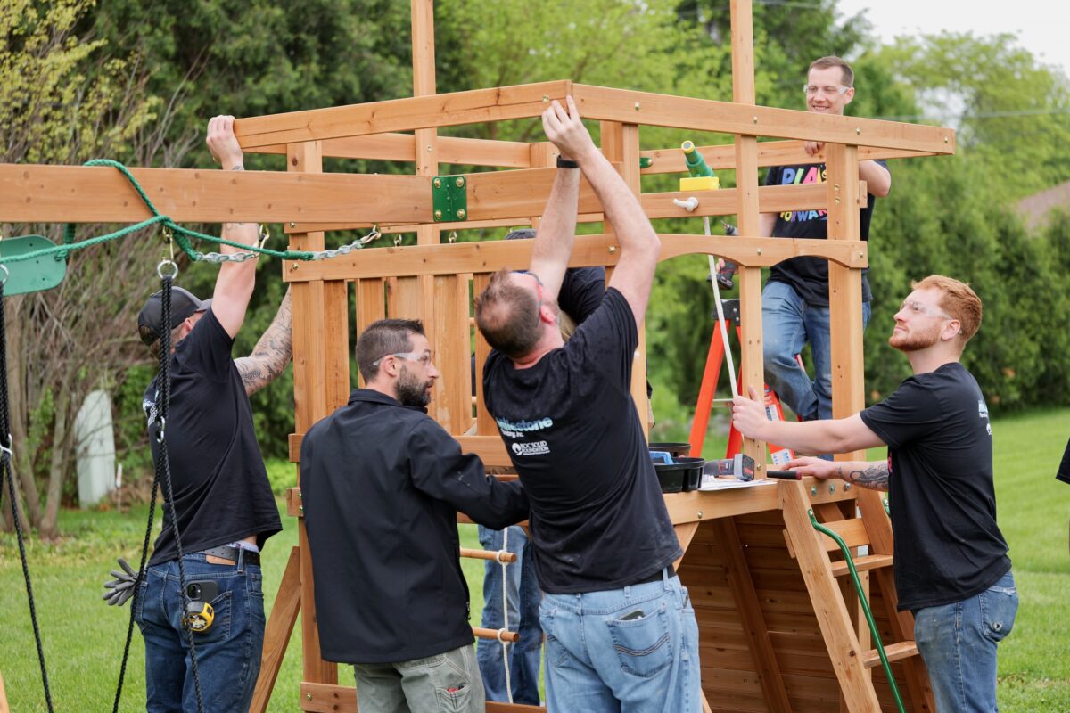 - Bring attention to the Roc Solid Foundation. This was the first Roc Solid playset build in the Milwaukee area, and we succeeded in getting the word out about what a great cause it is. The Milestone build sparked at least eight other playset builds in the midwest, helped in part by Jessie’s status as an influencer in the trades.