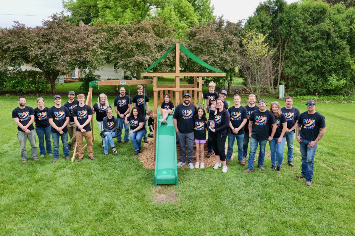As Jessie’s team was making their plans, the Third Eye Local team got to work on a strategy to support and promote the project. A team “Play It Forward” T‑shirt, a news release, and social media posts built excitement in advance and lined up media interest. On the day of the build, our team was on site to capture video, help staff a hospitality tent for family and friends, and pass a hammer now and then. A TMJ4 reporter conducted interviews and shot video.