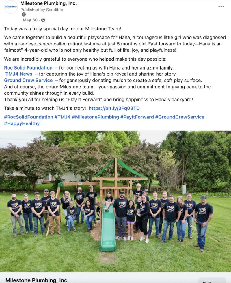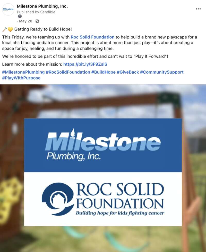 - Spotlight Milestone Plumbing’s image as a committed community partner.